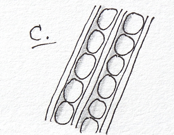 In this exercise with purk (one of my favorite tangles) by making your lines a bit lighter and your orbs a bit darker and slightly larger than what fits between your lines, it gives an illusion that this tangle is almost alive and moving. These orbs are busting out, creating perspective, contrast, depth and interest.