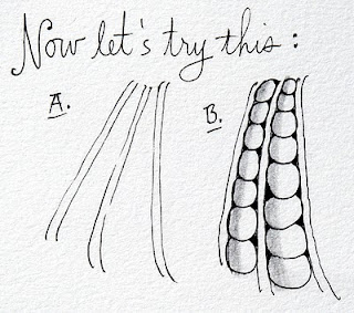 This tiny tutorial is not meant to get you to do something in some sort of so-called "correct" manner. It is also not meant to imply that there is a preferred outcome for your Zentangle creations. Our intention is to expand your range of choices and options. Sometimes, in looking for another pen or another color or another tangle, we overlook unexplored options that we already have. In this tiny tutorial, we're exploring the options of speed (of stroke) and pressure (of stroke) . . . an opportunity for a new focus, seeing things with new eyes.