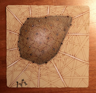 Next, I was experimenting on a tan tile, (one I had in my collection, that I did not mind if I screwed it up) and just varnished the "orbital cone-shaped whatch-a-ma-callit" in the middle.