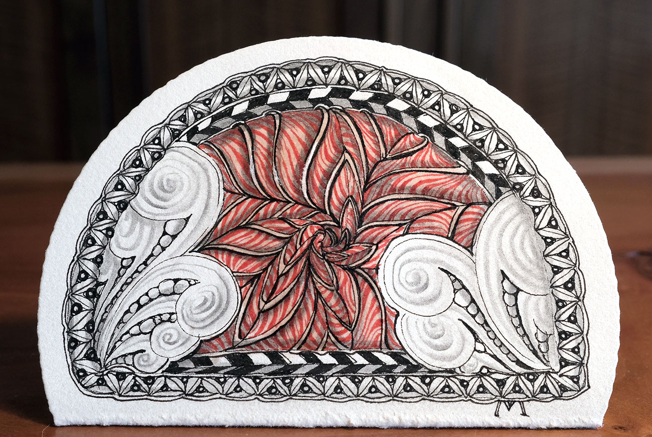 Soooo beautiful, Maria! I’m glad you reposted this piece because I had forgotten about this technique. Must try! To my “bag of tricks” I’ve added Sakura gelly roll pens. Sometimes I actually tangle with them, but more often I’ll use one of the lovely Stardust pens to add sparkle here and there with lines and/or dots. There are 12 colors + a clear! I enjoy the Metallics too, particularly the Copper.