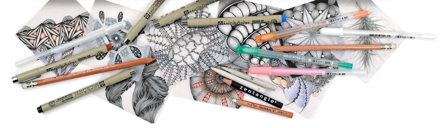 We have curated a collection of tangling tools that we have enjoyed working with on these tiles. We cannot wait to see what you create.